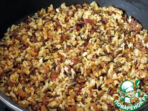 Затем добавляем рис, перемешиваем, оставляем на огне на 3 минуты, снимаем и охлаждаем.