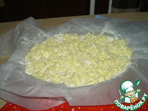 Я тру масло прямо "на весу", однако это не всем может показаться удобным. Поэтому натрите его на тарелочку, а затем посыпьте сверху на пирог воздушными крошками масла