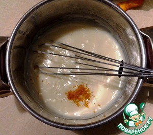 Введите в кастрюлю цедру апельсина, перемешайте.