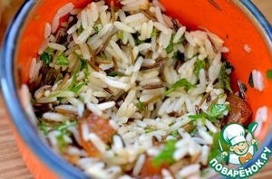 Рис отварить, как указано на упаковке. Там все просто: рис к воде 1:2, варить 15 минут. Если рис остался со вчерашнего обеда, то вам ещё проще. Всегда любила, когда есть заготовки. :)