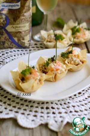 Рецепт «Корзинки с рисом и креветочным соусом»: