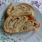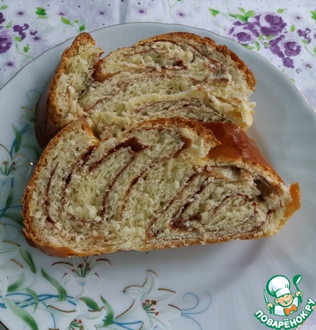 Два рулета с повидлом переплетаем между собой. Два рулета с корицей переплетаем между собой. Получается два рулета, один с повидлом и другой с корицей. Начинку можете брать любую.