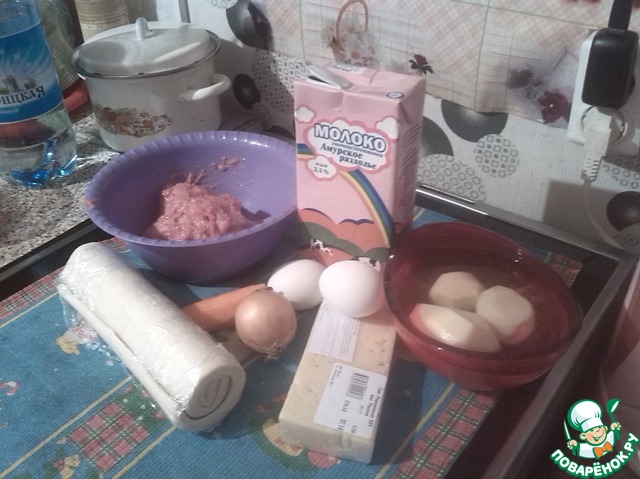 Ингредиенты для «Пирог из слоеного теста с куриным фаршем»: