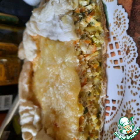 Рецепт «Пирог из слоеного теста с куриным фаршем»: