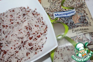 Рис отварить в подсоленной воде в соотношении 1:2, до впитывания всей жидкости. Для приготовления этого блюда я использовала рис Басмати Quinoa Mix ТМ Мистраль. Можно использовать любой рис ТМ Мистраль.