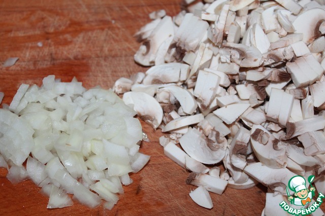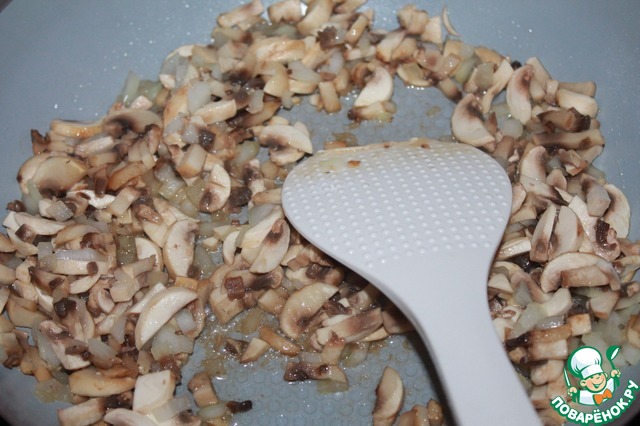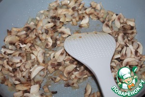 Обжариваем шампиньоны с луком на растительном масле, до готовности.