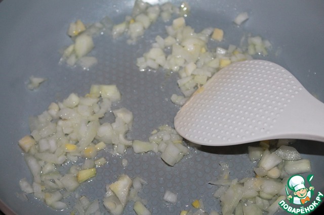 Режем еще одну луковицу и обжариваем ее на растительном масле.