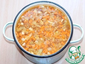 Рецепт «Суп с беконом и рисом в горшочке»: