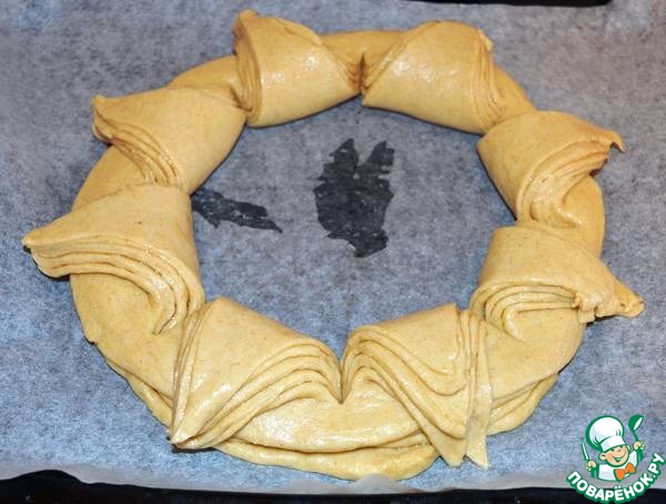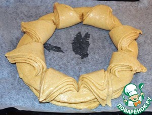 Обрезки от большого круга обминаем и укладываем в центр получившегося "солнышка". -