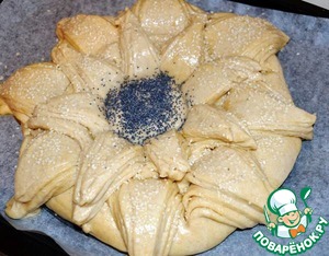 Смазываем хлебушек молоком и посыпаем лепесточки кунжутом, а серединку - маком! Оставляем на 30-40 минут, чтобы тесто подошло. Отправляем в разогретую до 180 градусов духовку на 30-40 минут. Ориентируйтесь на свою духовку!