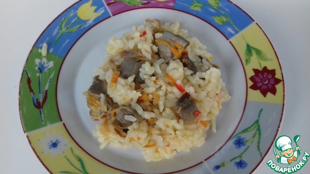 Замечательное вкусное горячее блюдо для всей семьи! Благодаря девочкам-конкурсанткам перед глазами всё время стоит - рис! :) И мне, очень захотелось приготовить желудочки именно с рисом. :)