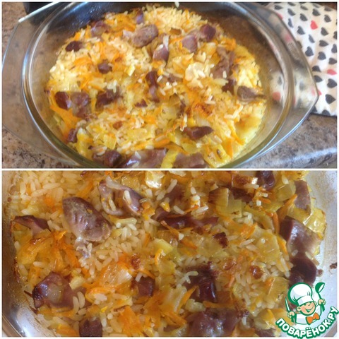 Рецепт «Куриные желудочки с рисом из духовки»: