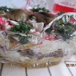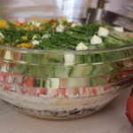 Я делала этот салат порционно, но его можно сделать и в большом салатнике, это уже желание каждого.