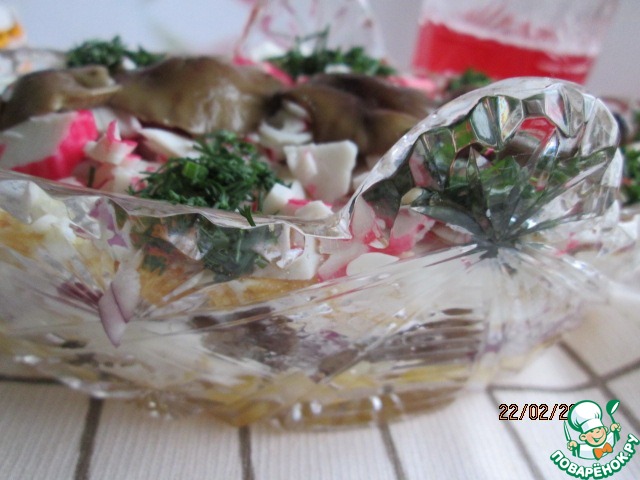 Почему "Грибы в засаде"? А потому, что грибы притаились с такими друзьями!!! Очень необычный, невероятно вкусный салат, который понравится Вам и украсит Ваш стол!!! Пожалуйста, угощайтесь!!!