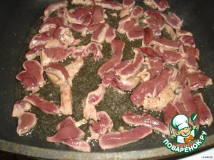 Пельмени отварить до полуготовности, печень слегка обжарить