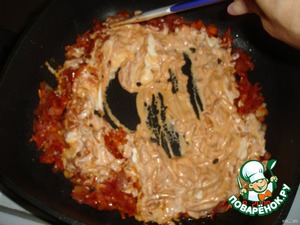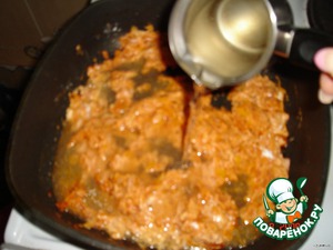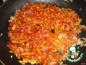 Вырезать из теста крышечки для горшочков (у меня 4 горшочка), в глубокой сковороде пассеруем морковь и лук