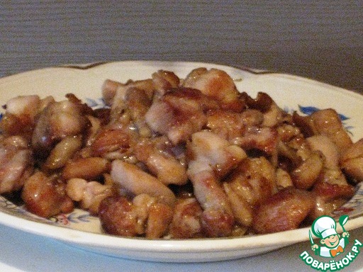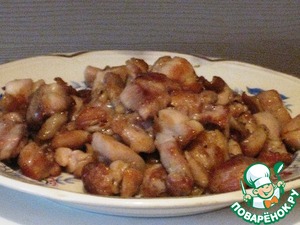 Нарезаем и обжариваем птицу, выкладываем на тарелку.