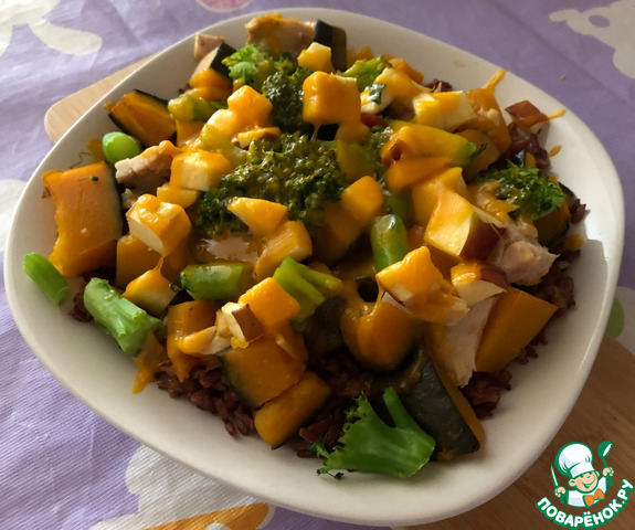 Сверху яблоко, брокколи, тыкву в произвольном порядке. Сверху немного посолить.