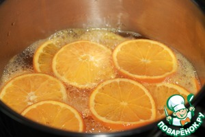 Итак, готовим мандарины конфи : мандарины вымыть, обсушить и нарезать тонкими кружочками. Семена кориандра истолочь в ступке, перемешать в кастрюле с сахаром, добавить воду и довести до кипения. Добавить нарезанные мандарины и готовить 45 минут на медленном огне.