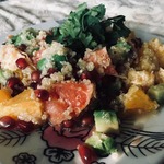 Интересный рецепт зимнего салата, который подарит вам много витаминов, так необходимых в сезон холодов! В салате гармонично сочетаются авокадо, гранат, цитрусовые и крупа киноа. Эта крупа, помимо множества полезных веществ, содержит белка больше, чем все остальные зерна! Причем этот белок содержит все незаменимые аминокислоты, что встречается довольно редко среди растительных продуктов. Также киноа богата фосфором, фолиевой кислотой, калием и железом.
