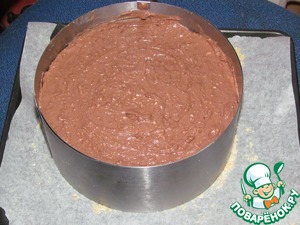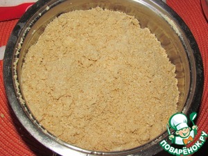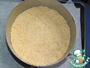 В форму для торта на дно выложить размятое печенье, хорошо утрамбовать и поставить в холодильник.