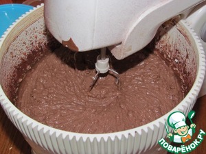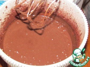Сливки взбить до устойчивой пены, добавить остывший растопленный шоколад, какао и ещё раз взбить.
