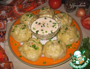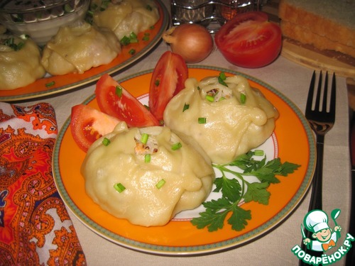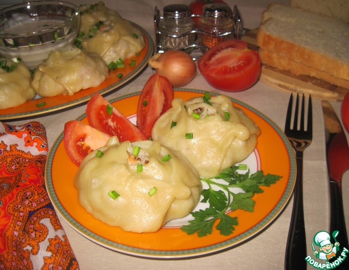 Благодаря добавлению в начинку филе морского языка манты получаются не сухими. -