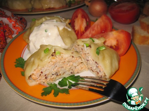 С чем только ни готовят манты - с тыквой, картофелем, мясом, тем и другим вместе. Я же хочу предложить любимую начинку моей семьи – из риса и рыбы. Блюдо получается очень вкусным, сытным, с сочной ароматной начинкой.