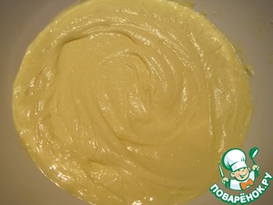 К желтковой массе добавим мягкое сливочное масло, цедру, сметану и снова взобъём до однородности.