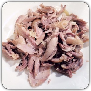 Снимаем мясо с костей и выкладываем в кастрюлю со щами. -