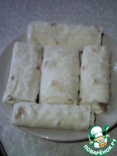 Выкладываем по 1-2 ч. л. начинки на лаваш и закручиваем трубочку.
