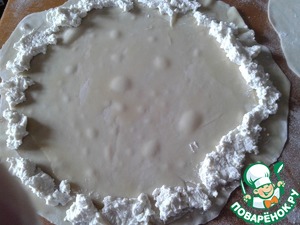 Отступаем 1-1,5 см от краев большого круга и выкладываем по кругу начинку.