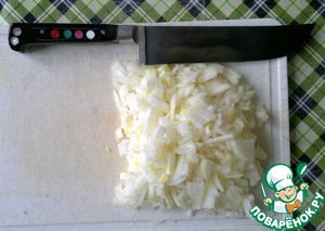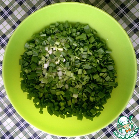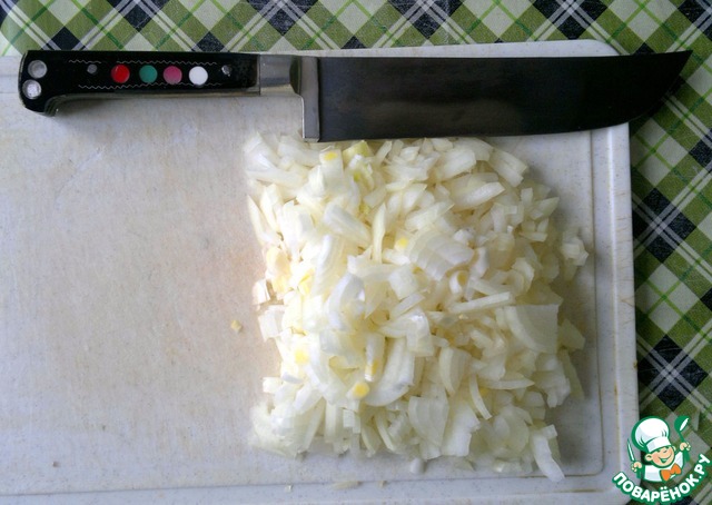 Пока варится требуха, займёмся овощами и зеленью. Лук режу мелко,