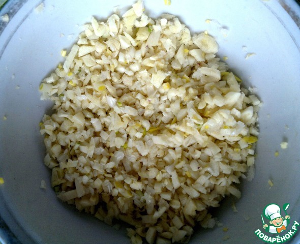 И, мелко порубив, смешиваю с 1 ч. л. соли так же, для сока.