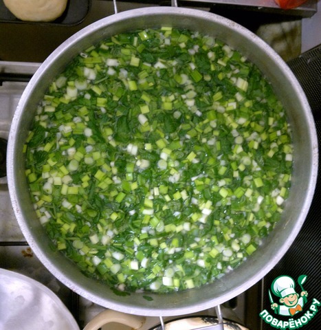 Кинзу тоже и выкладываю к луку, т. к. закладывать в суп я их буду вместе.