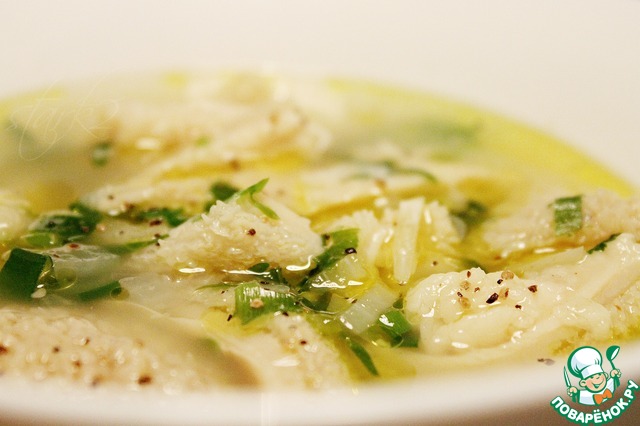 Чуть не забыл сказать про лаваш. Дело в том, что этот суп чудесно сочетается с сушёным лавашем, так же как и хаш. Лаваш я обычно выкладываю подсушиваться перед началом приготовления. Для этого просто разрываю его на порционные куски и сворачиваю рулетом, как на фото. Свёрнутым его удобнее крошить в тарелку. Быстрее всего лаваш подсыхает на сквозняке.