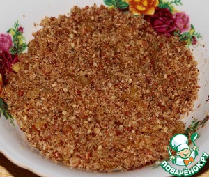 Чтобы орех распределился равномерней, измельчить его как можно мельче, но не в муку. Корицу взять 0,5 ст. л. с горкой так, чтобы получилась неполная столовая ложка. На любителя добавить щепотку молотой гвоздики (у нас не любят).