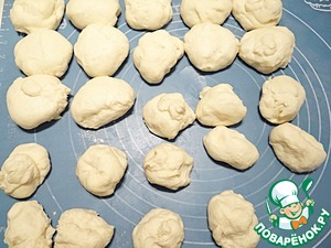 Для каждой корзинки надо разделить тесто на кусочки весом по 50 и 30 граммов.