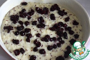 • Половину теста выложить в подготовленную форму. Распределить по ней ягоды. Сверху выложить оставшееся тесто.