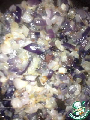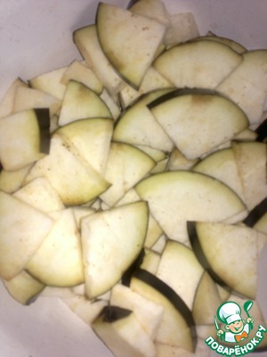 Нарезать баклажан крупными кусочками. Можно сбрызнуть лимонным соком, чтобы не потемнел (не обязательно).