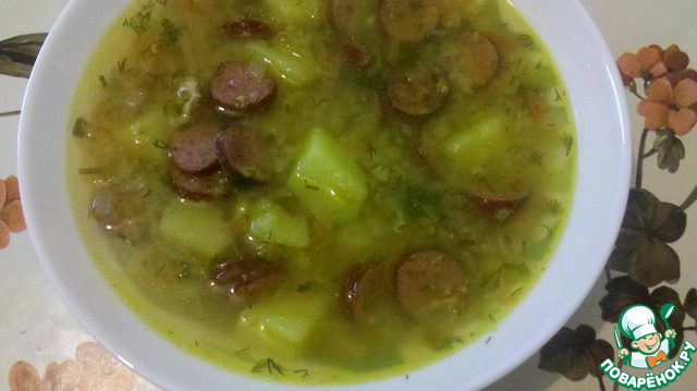 Рецепт «Чечевичный суп с охотничьими колбасками»: