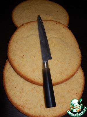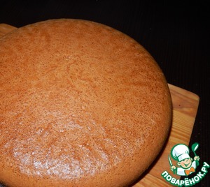 • Готовность бисквита проверяем деревянной шпажкой. Готовому бисквиту даем остыть при комнатной температуре, без формы, покрытому полотенцем.
