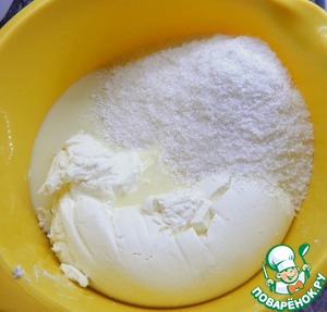 • Добавляем к сметане сгущеное молоко, кокосовую стружку и ванилин по вкусу.