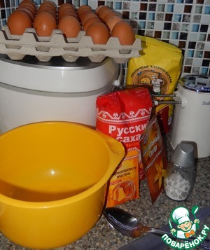 • Включаем на разогрев духовку, выпекать будем при 170 градусах. Готовим все ингредиенты для теста чтоб все было под рукой. Колличество указанно для формы 26 см. Торт пекла на большую компанию.