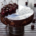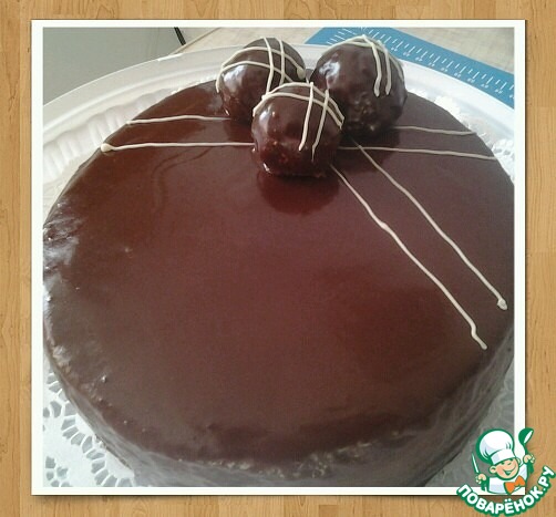 Торт перед глазированием желательно минут на 30-40 поместить в морозильную камеру. Глазурь должна быть все еще чуть теплой, иначе, соприкоснувшись с холодной поверхностью торта, она быстро застынет. Глазури дать равномерно растечься по поверхности торта. Вылить не всю сразу, а ровно столько, сколько, как вам кажется, будет достаточно для торта. Если собираете торт в рамке –наклоняйте торт то в одну, то в другую сторону для равномерного нанесения. Помним –глазурь –это не слой…. А просто декоративный элемент. Не стоит делать ее толстым слоем. И еще…У меня есть тонкая металлическая палочка с заостренным концом –я ее держу сразу при себе…Есть шанс, что появятся на глазури пузырек-два. Так вот –срочно надо будет их этой тонкой палочкой проткнуть. )) Поставить торт в холодильник до полного остывания глазури. Здесь я использовала фотографию старую, но как-то она лучше всего, из имеющихся у меня, демонстрирует способности этой глазури.