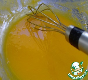 Смешать 30 гр желтков с 50 гр сахара. Добавить 15 гр сливок, 20 гр лимонного сока и 10 гр сока лайма. Перемешать.