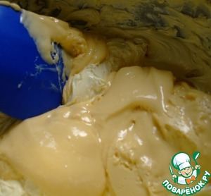 Чтобы сделать масляный крем менее масляным )) и более легким вводим в него в три приема нашу итальянскую меренгу. Аккуратно ЛОПАТОЧКОЙ перемешиваем до однородности.