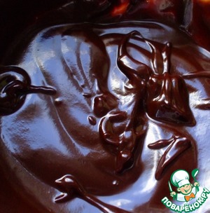 Глазурь. Любимая моя. 100 мл сливок смешать с 120 мл воды и 145 г сахарного песку. Довести до кипения, всыпать 50 гр какао не сладкого. Уварить до 103С (не паримся насчет температуры : растворится какао полностью, получится тяжелая, однородная на вид смесь, кипит тяжелыми крупными пузырями -готово!). Ввести в еще горячую глазурь предварительно замоченные в холодной воде на 5 минут и отжатые 8 гр листового желатина. Процедить через сито. Мне эта глазурь очень нравится -минимум ингредиентов, а работать с ней легко. Остатки глазури можно заморозить и хранить в морозильной камере. Использовать, нагрев в микроволновке. Все отлично работает –не раз опробовано было.