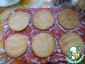 Дальше я взяла силиконовые формочки для кексов, застелила пищевой пленкой.