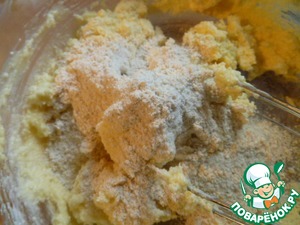 Добавить соду смешанную с небольшим количеством муки, корицу и остальную муку.